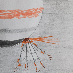 The strange white ball drew nearer and nearer. Would they be able to land, they wondered? Just like Jupiter, Saturn seemed to have swirling patterns all around it. James gasped. “Oooh look, Mummy! Aren’t there lots of pretty patterns down there? Can we go and see what they look like?”