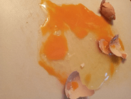 You would be amazed how much floor space is covered by six broken eggs. Eugh!