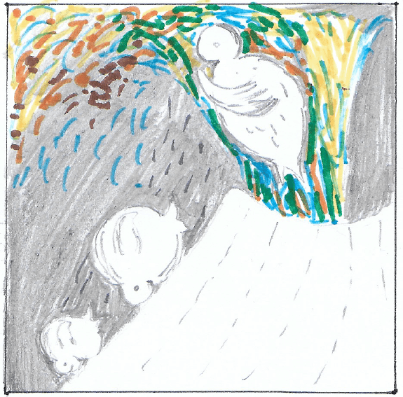 Polly and her family carried on with their story. They’d tumbled down the side of the volcano until they reached the bottom.