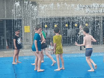 After an enjoyable light meal at the nearby market, it was time to return to King’s Cross for our train home. Martin decided we’d go via a water feature situated beside Queen Elizabeth Hall. What I didn’t expect was that Sam would end up taking most of his clothes off and splashing around with hosts of other children. Of course, in a more muted way, Olena joined in, too!