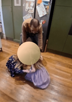 Meanwhile, the girl’s little sister and Grace were having their own alternative party. There was a colouring activity with mum Rachel, after which dad Martin repeatedly lifted both girls aloft for several seconds at a time before they landed in a giggling heap on the floor. Grace can shriek and squawk for England when something doesn’t suit her. But on the other hand nothing compares with a tiny child’s squeals of