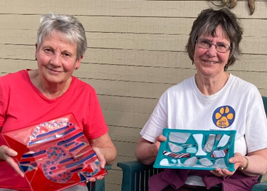 8. Vernon Community Arts Centre and Science Centre are situated next to each other close to the town centre. The Science centre is family-friendly and interactive. It concentrates on a few well-chosen topics such as the experience of space travel, dinosaurs, robotics, chemistry corner, and a smart showcase of mineral specimens. The arts centre has exhibits but its work centres around classes and workshops such as the glass fusion creation that Jane and Di took part in.