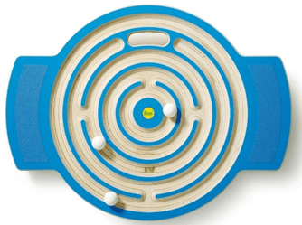lt had all looked so tempting, that wobble board with a maze sunk into its upper face. My challenge was to balance on top, moving two marbles in towards the centre, then back out to the edge. [The picture shows a similar model with a third marble] As usual, I tried a little too hard, lost my balance, and…Splat! “Ouch!” I cried, as I began to pick myself off the floor. Physio Jan came alongside me straightaway with a most concerned look on her face, telling me to go steady and easing me gently onto a chair. Was I alright? Could I still move my arm this way, that way…I’ve never quite lost the schoolboy mindset where you expect to jump straight back up and rejoin the class. I still don’t think of a fall as a serious occurrence, even after Jane’s debacle in town in which she fractured her wrist after a simple tumble. Afterwards, poor Jan had to spend a happy hour filling in an accident investigation and was most concerned that I report any symptoms that might develop later. None did, but the wobble board had a rest for a week or two afterwards.