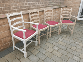 ‘Four sturdy chairs awaiting a new owner who will sand them down and lovingly repaint them’